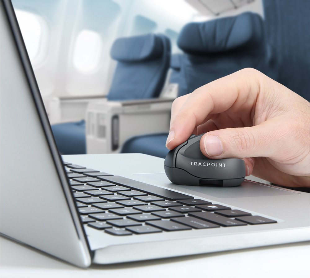 This is the Tracpoint mouse made by Swiftpoint. It is marketed as the “Ultimate travel mouse”, as it is small and intended to be used in collaboration with a laptop. It “weighs in at 25% of the weight of a conventional mouse – and is smaller than a golf ball.” This mouse is meant to be an alternative to the track pad and does not boast superiority in function/ergonomics to a conventional full-sized mouse.